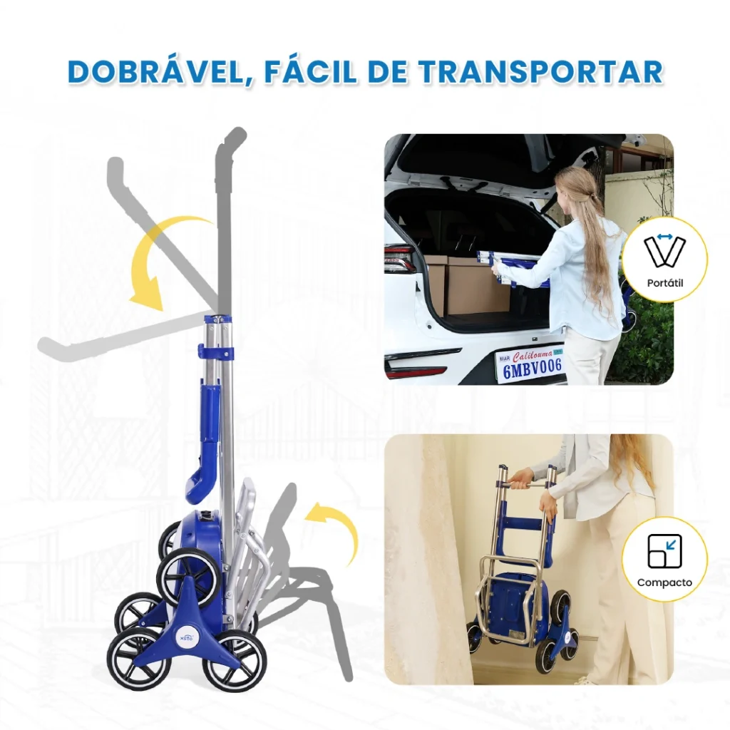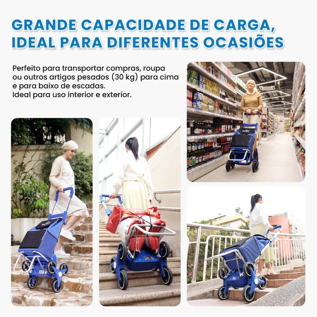 Este não é um carrinho qualquer. É um sistema inteligente que sobe escadas por si, concebido para quem já não quer depender de ninguém para transportar as compras ou uma garrafa de água para casa. O seu motor elétrico silencioso, o design dobrável e a estrutura leve fazem dele um companheiro indispensável, tanto para os idosos como para quem vive em prédios sem elevador.