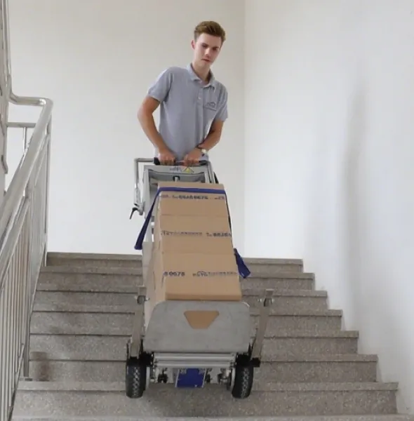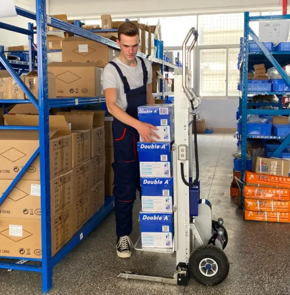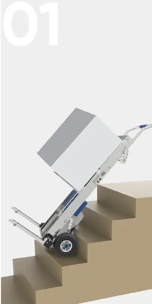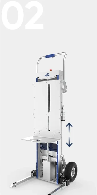 O carrinho elevador para escadas SCL170A é um equipamento de movimentação de materiais que combina as funções de um carrinho para subir escadas e de um elevador. Pode transportar mercadorias, subir e descer escadas, ultrapassar obstáculos, transportar cargas em superfícies planas, levantar cargas, carregar e descarregar mercadorias, bem como realizar operações de carga e descarga. É fácil de transportar. O centro de gravidade da carga pode ser ajustado durante a subida e descida de escadas, estando disponíveis várias opções para adaptação a diferentes condições de trabalho.